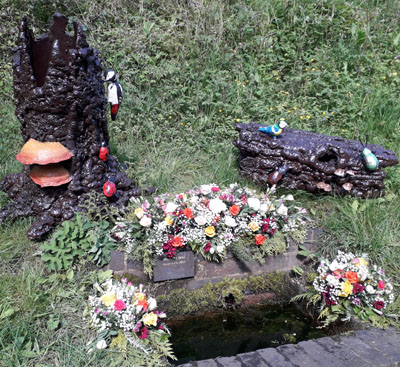 3- 10 May 2024 - Once again it was the Well Dressing weekend in the Malvern Hills. More than 50 sites sported the most stunning decorations for all to see. Participants include members of local clubs and organisations. The theme in 2024 was "Trees" and when decorated, the springs and wells provide an entertaining excuse to tour the hills, seeing the amusing and picturesque results of people's efforts. The weekend started on Friday 3 May when the dressings are carried out, the following day judging took place. The results of the judging were celebrated in Priory Park Great Malvern on Monday 6th when certificates were presented to the winners at 2pm as part of a family fun day. This included live music as well as other entertaining activities. Pictures of dressed sites below include Weavers Wells 88, named after Cora, and Lower Wyche Spout 46.